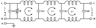 Using multi-stage filter circuit, with very good common mode and differential mode noise suppression, general purpose power line filter with fast-on/stud/wire terminals