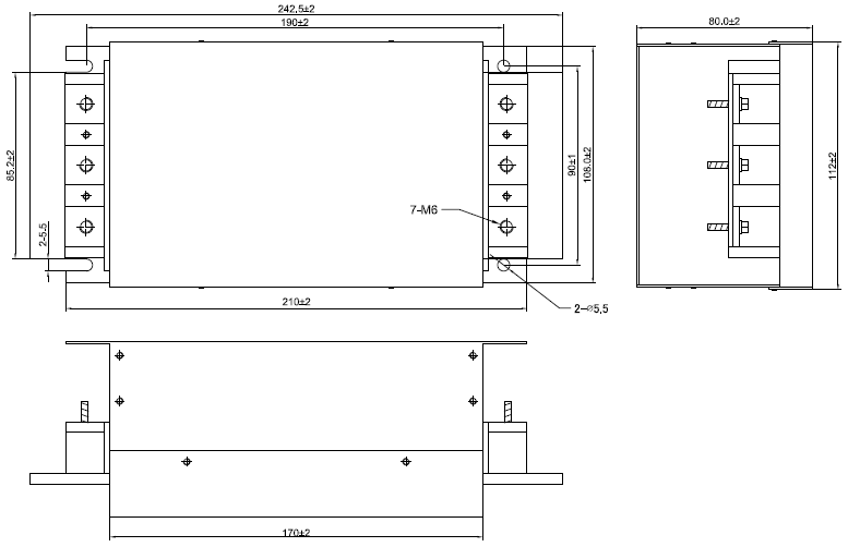 3 phase line filter with standard attenuation